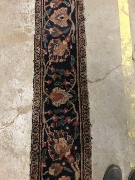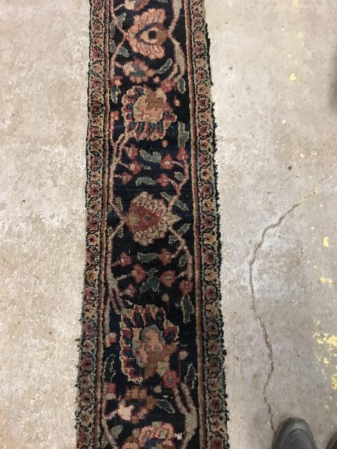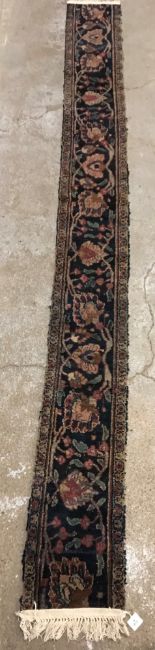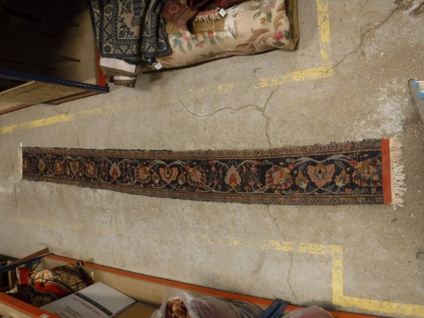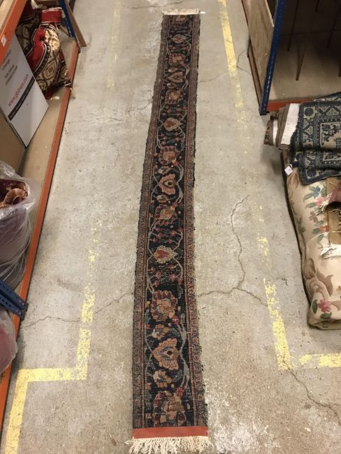 A Persian runner, the central panel set with foliate decoration on a dark blue ground, within a foliate decorated border, approx 256 cm x 34 cm