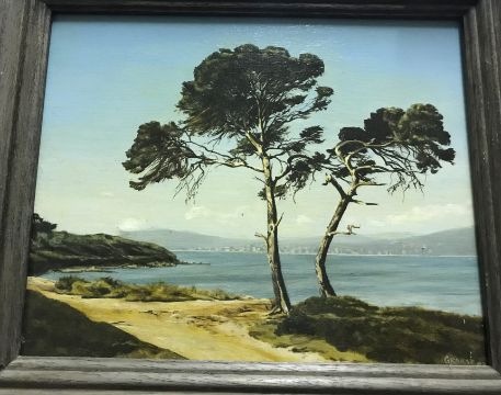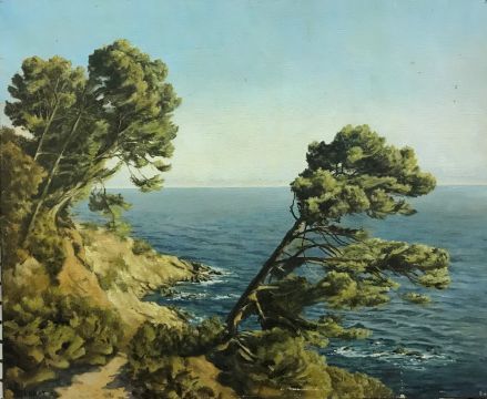 GRANAT "Continental coastal rocky landscape with trees in foreground", oil on canvas, signed and dated '98 lower left, image size 38 cm x 46.3 cm, together with another similar signed lower right and dated indistinctly, size including frame 34.5 cm x 39.5 cm (ARR)
