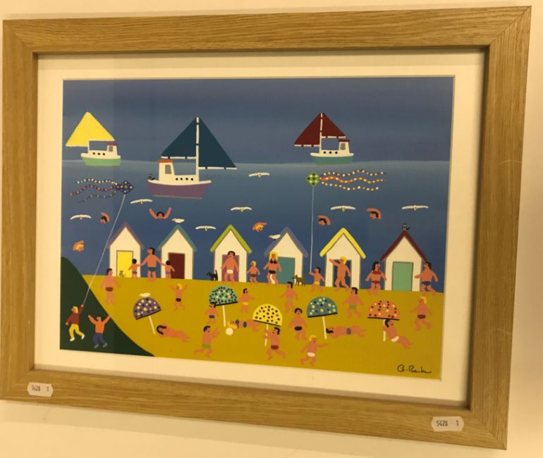 GORDON BARKER "Day on the beach", gouache, titled and signed verso, 25 cm x 34 cm