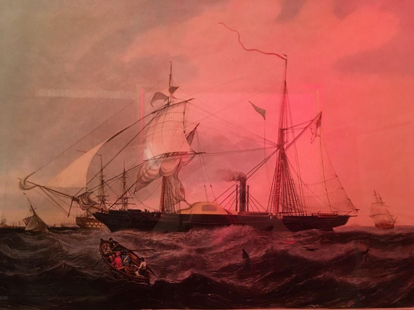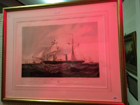 AFTER WILLIAM ADOLPHUS KNELL (British 1845-1914) "Steam frigate Cyclops off Spit Head under Admiralty orders ... commanded by Captn Horatio T Austin RN" acquatint, printed by H Papprill 1857 50 cm x 66 cm