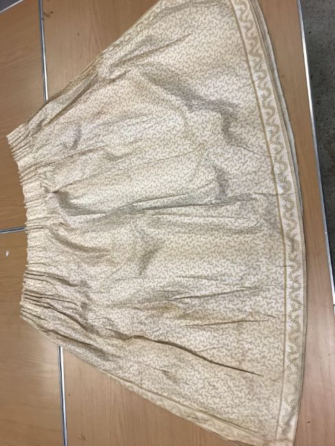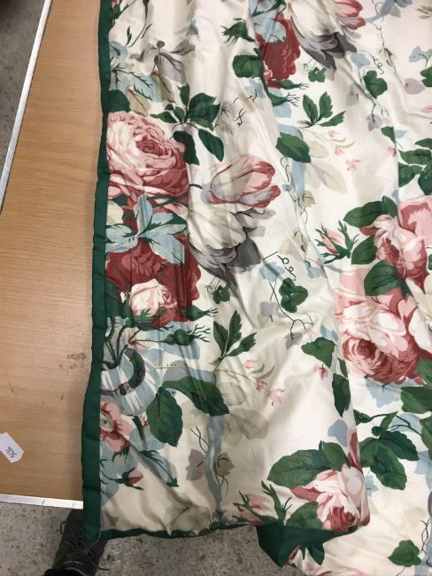Self-patterned floral decorated pach curtain - Good - some slight sun fading to edges and a couple of small marks on the main curtain. Single glazed cotton chintz curtain - Poor - top dirty and discoloured with sun fading and water marks. General wear and tear conducive with age and use. See images for examples and further detail.