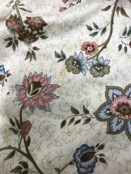 Two pairs of linen type cream, mushroom and aqua Laura Ashley striped interlined curtains with taped pencil pleat headings, approx 208 cm drop x 125 cm wide at bottom, a single matching curtain, approx 208 cm drop x 218 cm wide at bottom and a further single matching curtain, approx 208 cm drop x 170 cm wide at bottom, together with a pair of blue velvet curtains with taped pencil pleat headings, approx 124 cm drop x 166 cm wide at bottom, a pair of Crowsen Fabric "Sandringham" cotton satin lined curtains with taped pencil pleat headings, approx 212 cm drop x 233 cm wide at bottom and a pair of GP & J Baker "Canton" cotton lined curtains with fixed triple pencil pleat headings, one pair approx 207 cm drop x 317 cm wide at bottom and 139 cm wide at top, the other approx 139.5 cm drop x 258 cm wide at bottom and 113 cm wide at top CONDITION REPORTS Laura Ashley striped curtains - all Good - one corner grubbyBlue velvet curtains - Fair - some sun bleaching to one curtainCrowsen Fabric "Sandringham" curtains - Good - some marks on lining and a couple of isolated marksGP & J Baker "Canton" First pair - Good - linings Fair. Second pair - Fair - some staining.All have general wear and tear conducive with age and use. See images for examples and more detail.