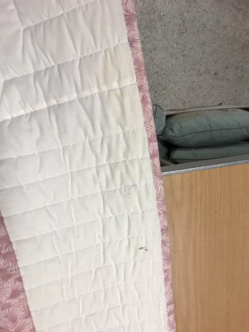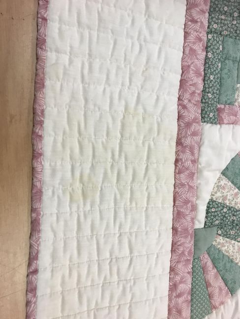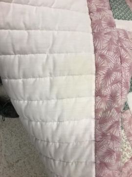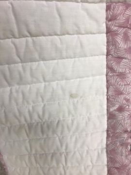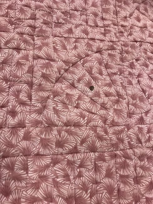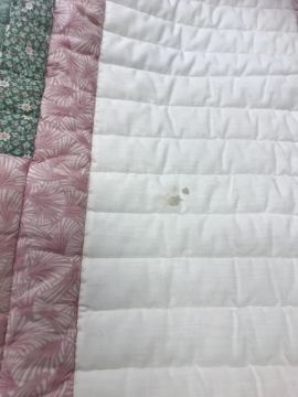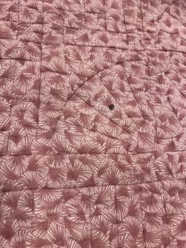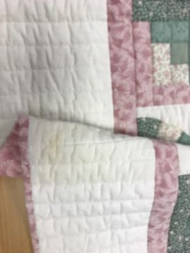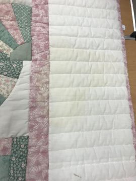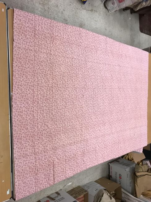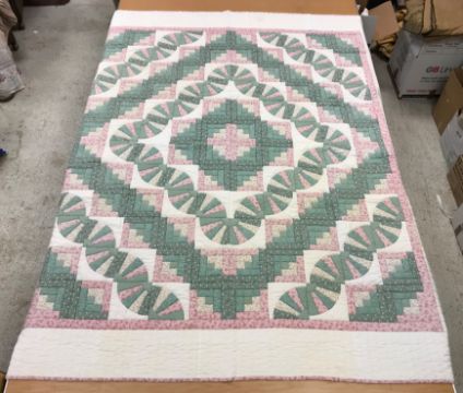 A modern Canadian patchwork quilt in white, pink and green, 234 cm x 262 cm