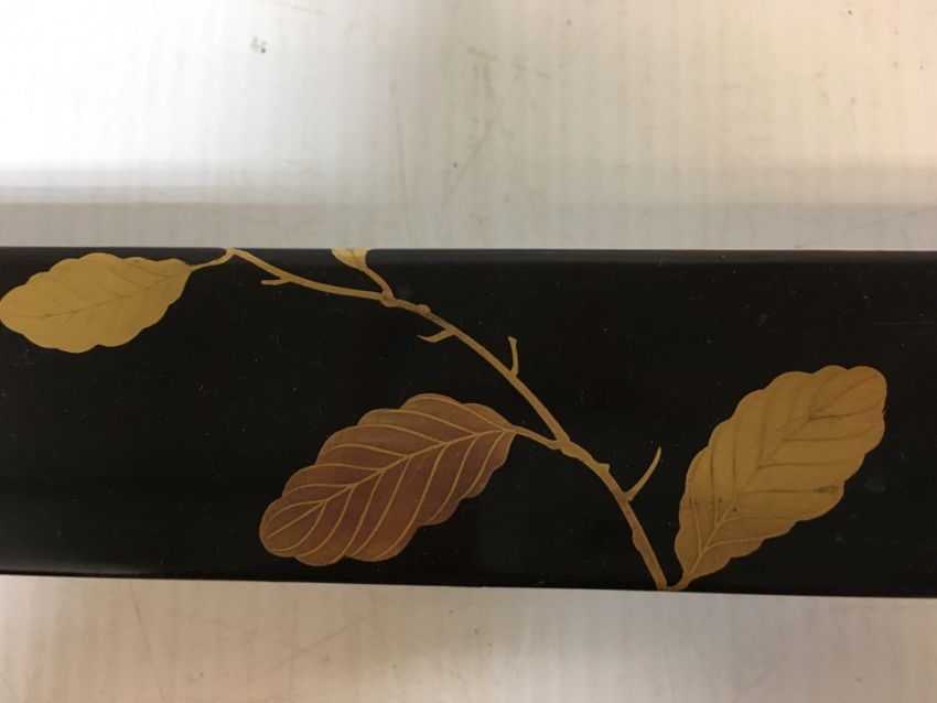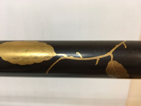 A circa 1900 black lacquered and gilt decorated kimono stand