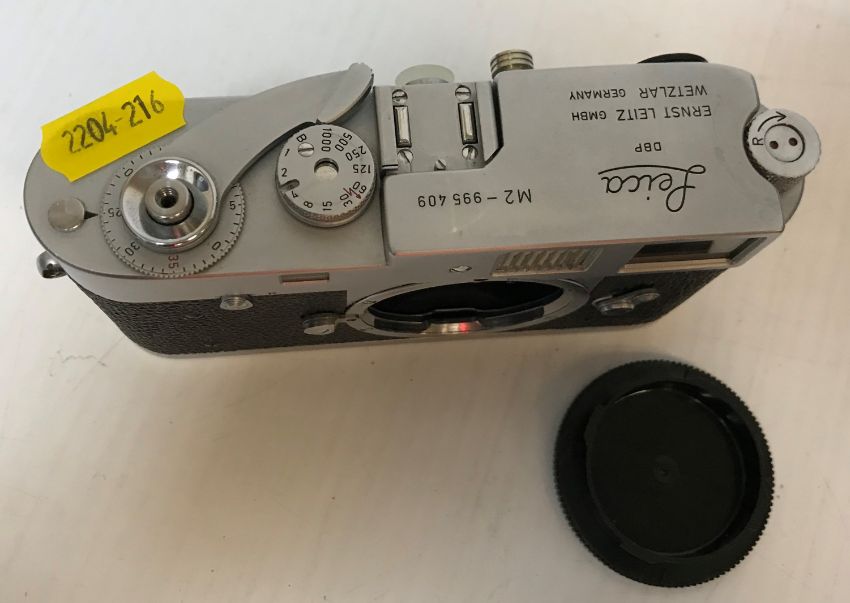 A Leica M2 camera by Ernst Leitz (No. 995409), together with fitted case of accessories including E55 UVA lens, two further lenses, MC meter, MR meter, etc CONDITION REPORTS This camera like all items from Lot No. 200 through to and including 250 all from the same collector's deceased estate. Condition of the camera throughout appears to be good although with some signs of surface wear and tear, minor scratching conducive with age and use. Accessories appear to be in similar condition throughoutYes there have been plenty of enquiries about most of them and this camera in particular. When wound and button pressed, appears to work, though this cannot be guaranteed.