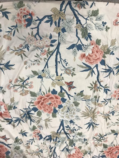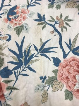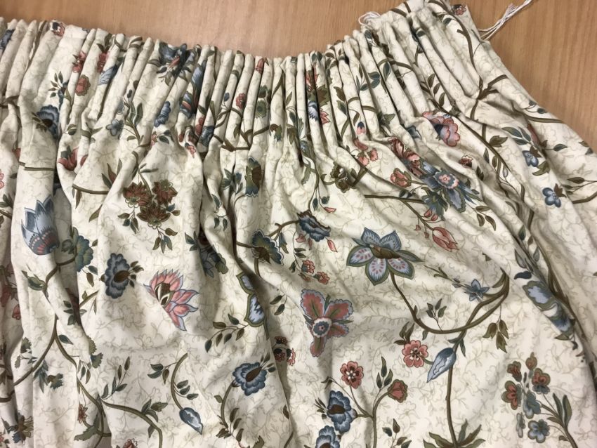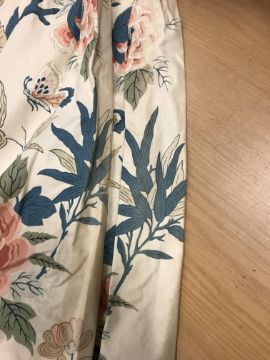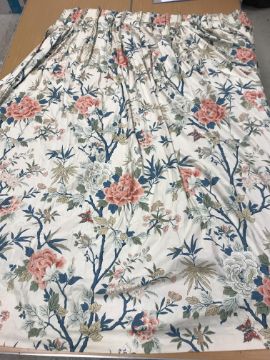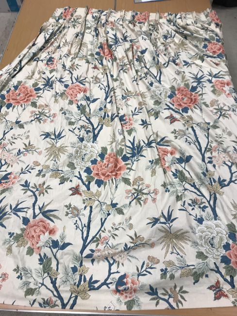 Laura Ashley striped curtains - all Good - one corner grubby Blue velvet curtains - Fair - some sun bleaching to one curtain Crowsen Fabric "Sandringham" curtains - Good - some marks on lining and a couple of isolated marks GP & J Baker "Canton" First pair - Good - linings Fair. Second pair - Fair - some staining. All have general wear and tear conducive with age and use. See images for examples and more detail.