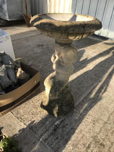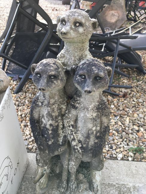 A collection of composition figures of meerkats approx. 25 and a composite stone bird bath