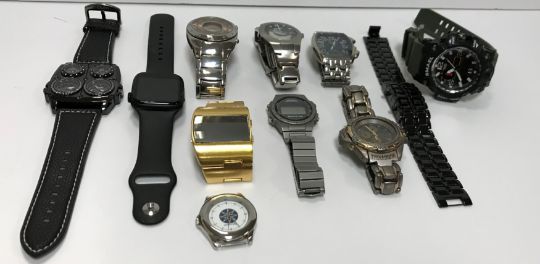 A collection of nine various gent's wristwatches including Jaguar stainless steel cased wristwatch, Seiko Sports 100 digital watch, Smael gent's wristwatch, Titanium Premia quartz wristwatch, Sekonda quartz steel cased wristwatch, Solsuno digital wristwatch, gold coloured cased digital wristwatch, another digital wristwatch, a Fahrenheit wristwatch, together with various straps / parts