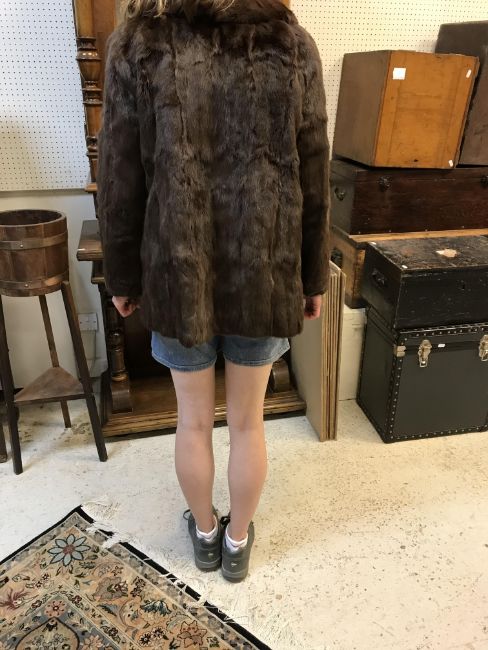 A brown mink jacket with satin lining, together with a grey rabbit fur coat with satin lining