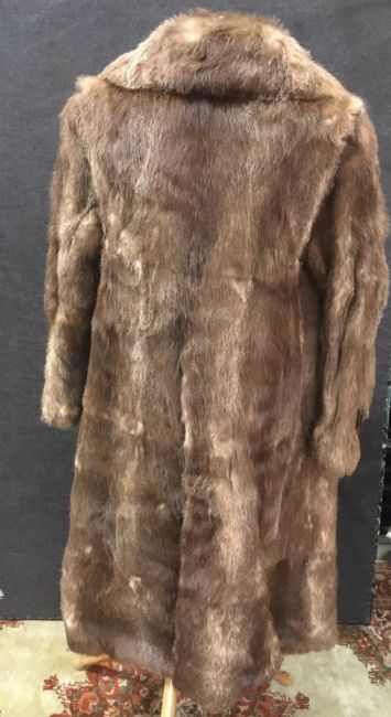 A ladies fur coat with leather tim