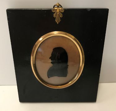 CHARLES ROSENBERG (1745-1844) "Gentleman facing left", silhouette bust, reverse painted on glass, unsigned, bears artist's label verso "Rosenberg Profile Painter to their Majesties Their Royal Highnesses The Prince and Princess of Wales and The Duke and Duchess of York No. 14 Grove Bath" and inscribed on "Christie Collection" label "Sept 1945", 7.5 cm x 6 cm