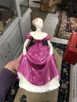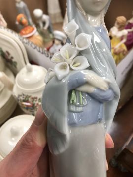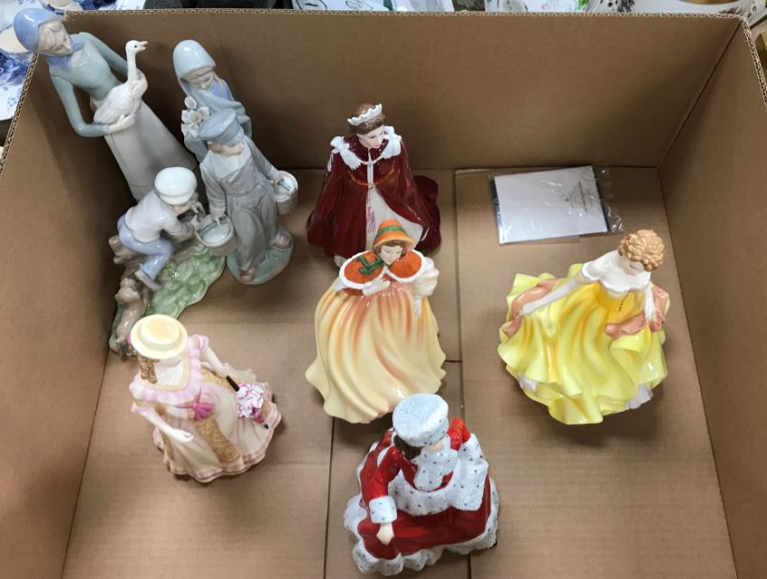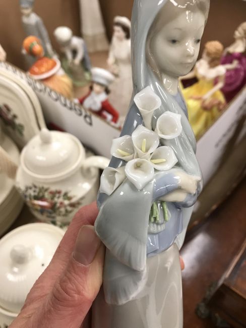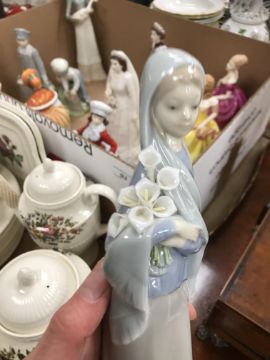 Coalport "Ladies of Fashion - Flair" has a small chip to her frill. Lladro figure of a young girl with lilies - several of the lily stamens are broken off and possibly one stem missing. Otherwise all with general wear and tear conducive with age and use - see images for more details.