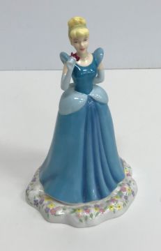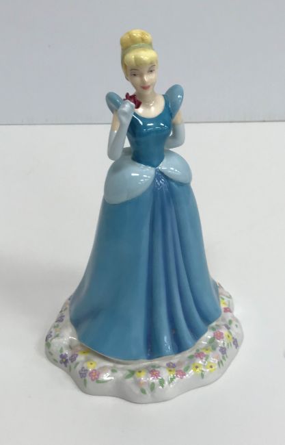 A collection of Royal Doulton figurines "Pretty Ladies - Spring, Summer, Autumn and Winter", a Royal Doulton Disney Princesses Cinderella figurine, a Coalport figure "Ladies of Fashion -Flair", a Royal Worcester figurine "Her Majesty Queen Elizabeth II" circa 2007, another "In celebration of the Queen's 80th birthday 2006 dressed in the robes of the Order of the British Empire", a Lladro figure of young boy with two buckets, a Lladro figure of young girl with lilies, a Tengra figure of young boy and dog by a stile and a Lladro style figure of a girl with goose