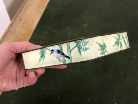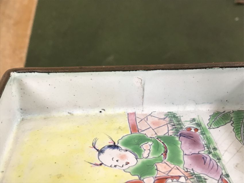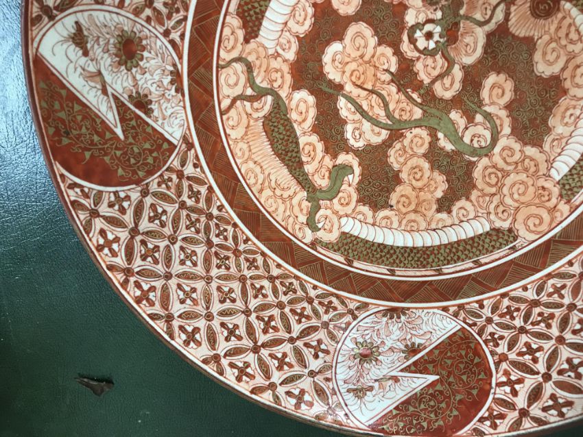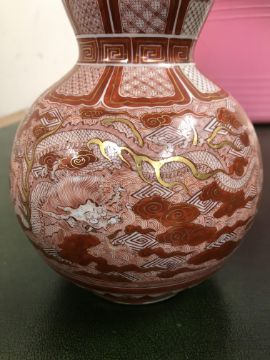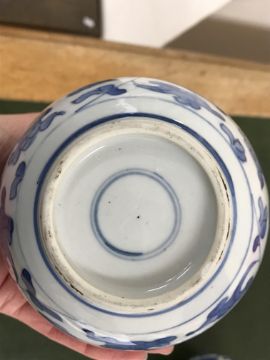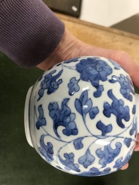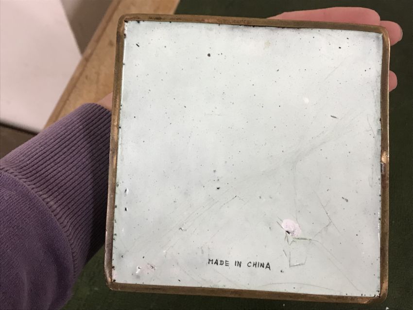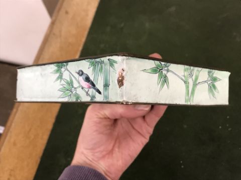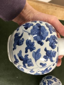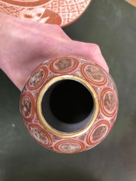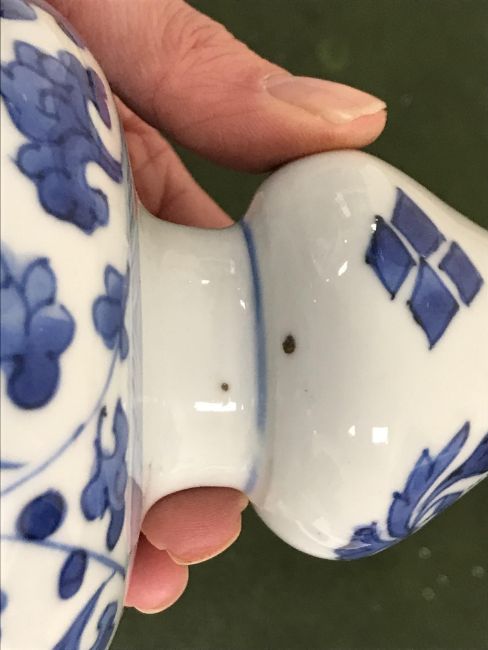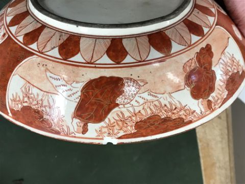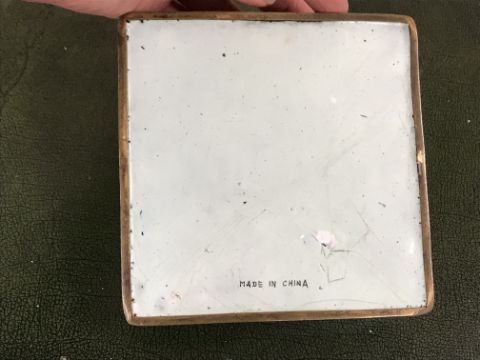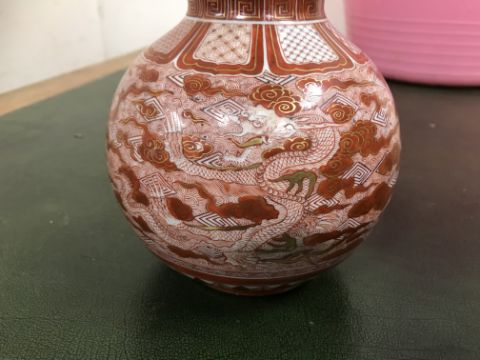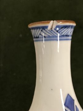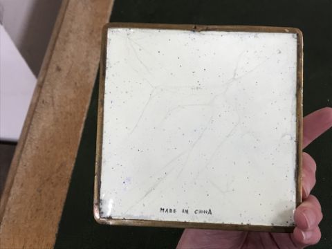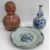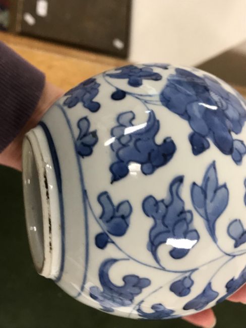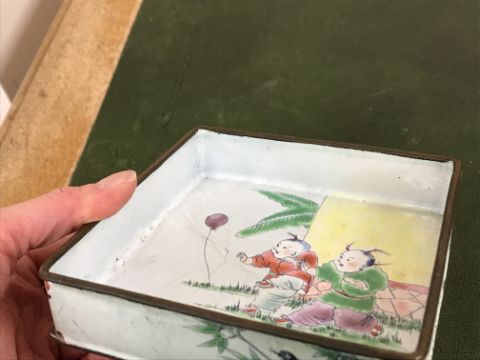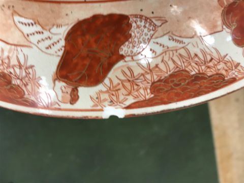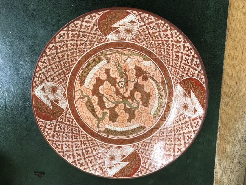 Gourd shaped vase has not been ground down, glazed inside throughout and the gilt appears to be original. All over crazing. The charger has a chip to the outer rim, all over crazing, some discolouration. Blue and white plate has chipping throughout to the edge. Pair of blue and white vases - both have chips to the rims and hairline fractures running from them. One has a chip to the glaze on the main body. Otherwise all have general wear and tear to include firing faults etc conducive with age and use. The three enamelled pieces - all have damage, the pair of square dishes - significant damage throughout and the match striker cover has losses to the enamel in various places and some colour striations to one side. All items have general wear and tear conducive with age and use - see images for more details