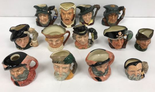 A collection of mid sized Royal Doulton Toby jugs comprising "The Walrus and the Carpenter" (D6604), "Rip Van Winkle" (D6463) x 2 (one liqueur flask and one jug), "Long John Silver", "Robinson Crusoe" (D6539), "Robin Hood","Tam O'Shanter" (D6636), "Falstaff" (D6385) x 2 (one liqueur flask and one jug), "Merlin" (D6543), "Old King Cole", "Sergt Buzz Fuzz" and "Pied Piper" (D6462) (13)