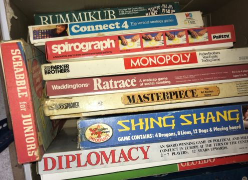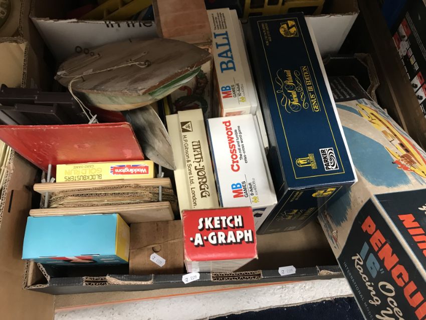 A Milbro products Ailsa yacht model sailboat, together with a Penguin 16" ocean racing yacht model, boxed, a Tonka dump truck, a wooden fire engine and a collection of various board games (3 boxes)