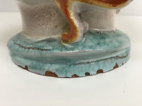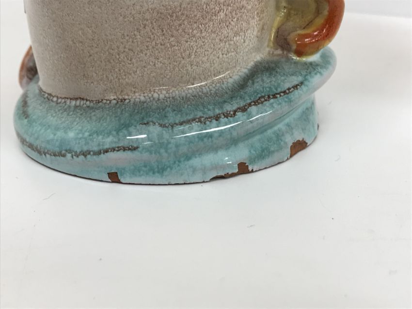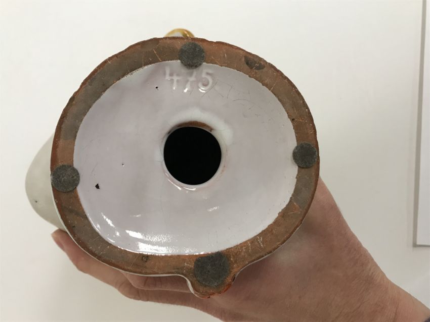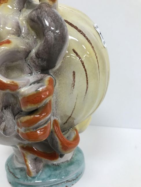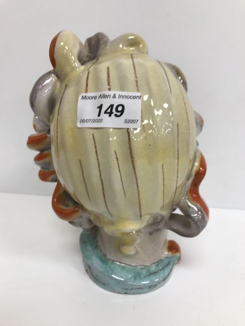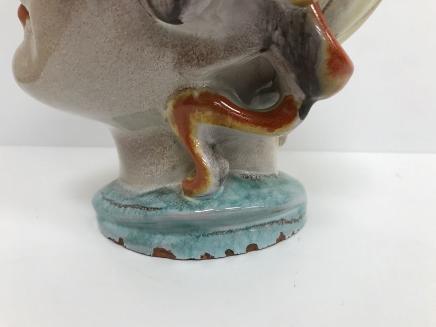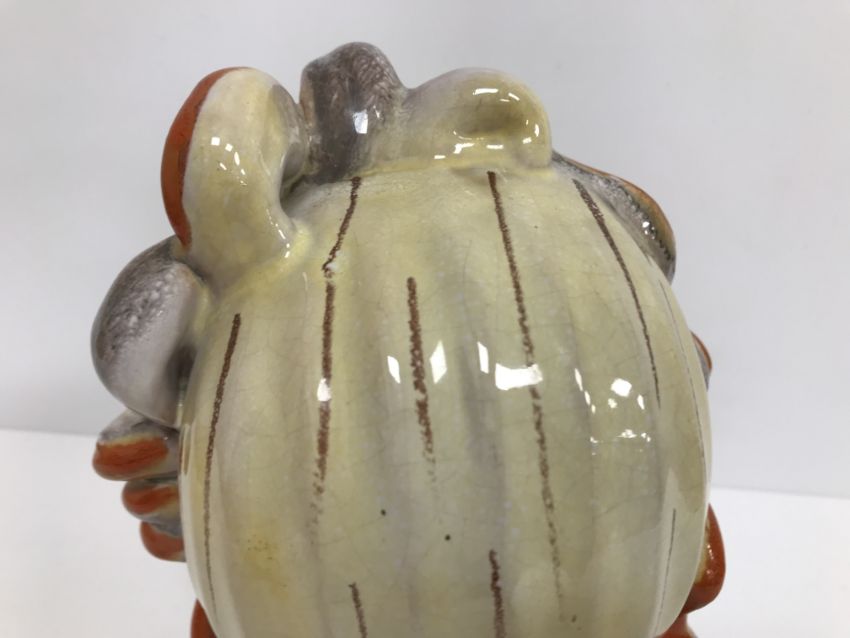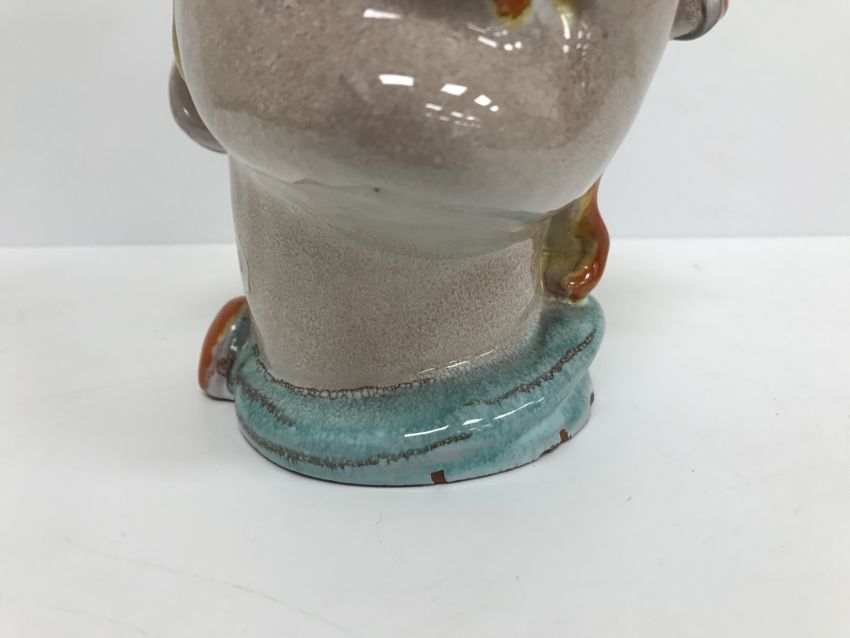 A Continental glazed pottery figure of a "Lady's head" in the Art Deco Goldscheider manner, No'd. 475 to base, 20 cm high CONDITION REPORTS Has crazing all over. Some chipping to the base although some appears to have been done during manufacture. Surface scratches. There is an area of glaze missing from her back left hand curl. Otherwise general wear and tear conducive with age and use, to include in need of a clean. See images for more detail.