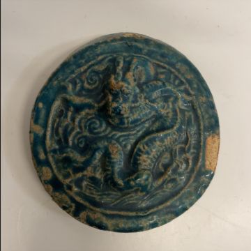 A Chinese turquoise glazed terracotta medallion decorated with a dragon, 12.5 cm diameter