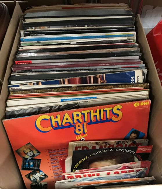 A box of assorted records to include mainly Classical LPs as well as various singles to include Hot Chocolate "Bobby Solo", etc, together with a bag of Star Wars Weekly comics ot include 3,10, 17, 19, 22, 27, 33, 38, 39, etc and a quantity of football programmes, mainly relating to Swindon and Liverpool
