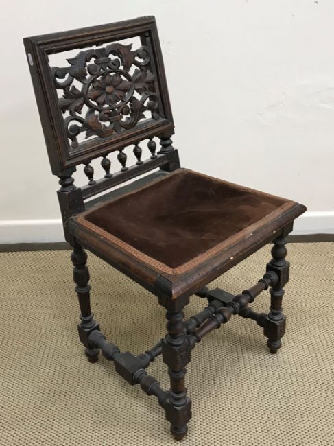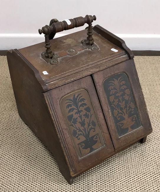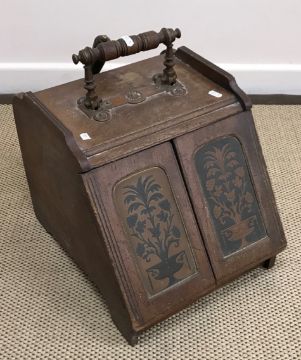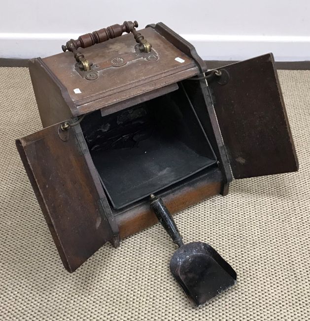 An early 20th Century coal box in the Aesthetic taste with shovel and a late 19th Century hall chair