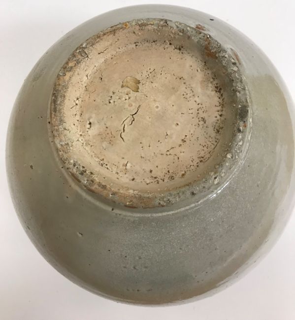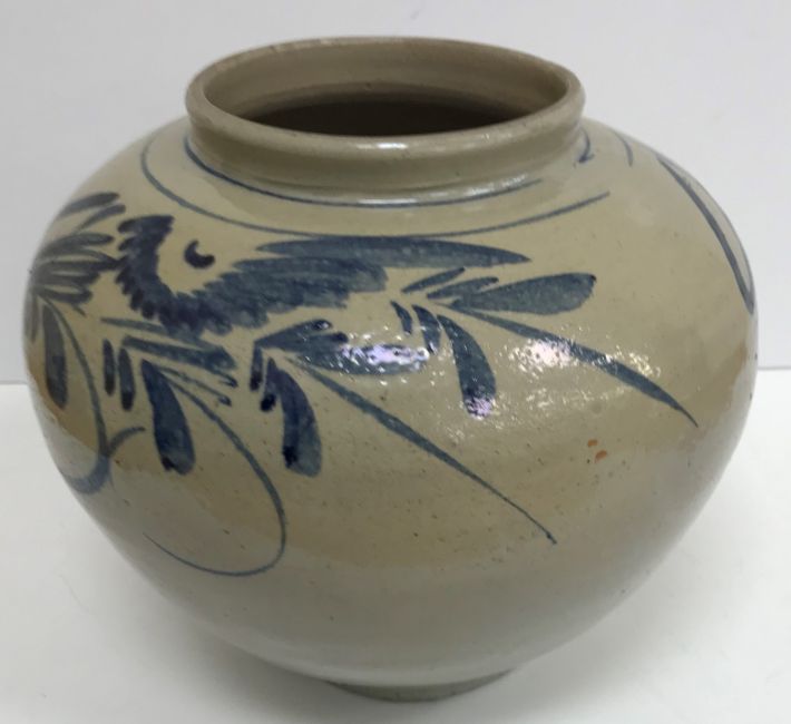 A 19th Century Korean glazed pottery jar (Hwang-Hae-Do) of globular form, with floral painted decoration, 25 cm high