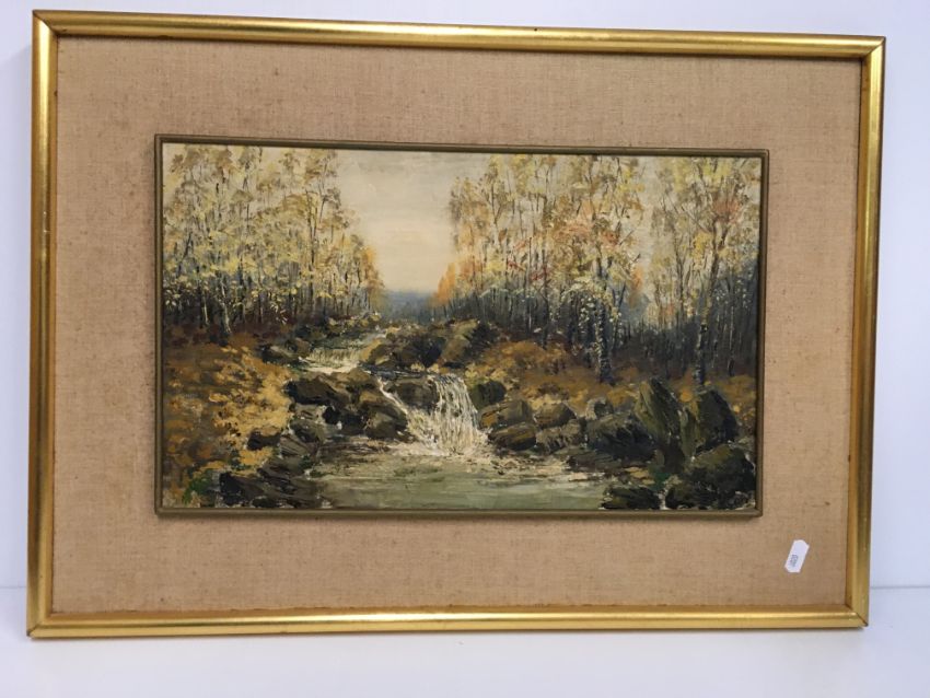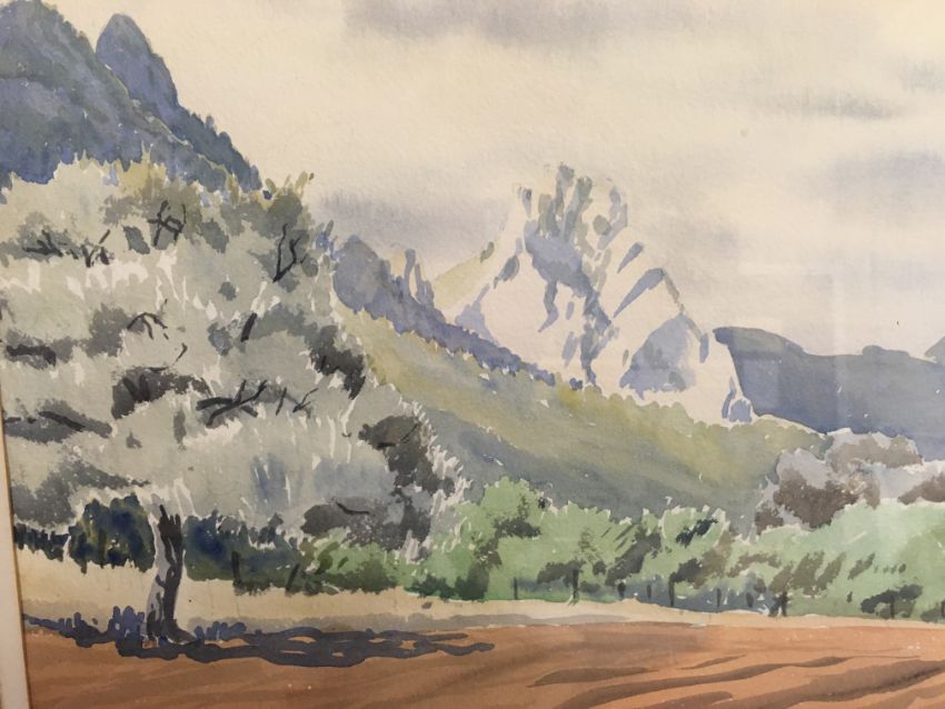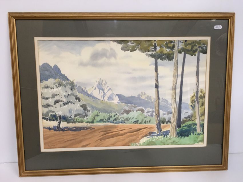GEORGE MARK OSWALD DAVY (1898-1983) "The Troodos Mountains, Cyprus" watercolour, signed and dated 1959 lower left 36 cm x 55 cm together with P.L. CARR "River landscapes" a pair, oil on board, signed lower right 27 cm x 44 cm and a RUSSELL FLINT print