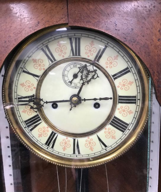 An early 20th Century Vienna regulator 126 cm long, the white enamel dial set with Roman numerals and secondary dial