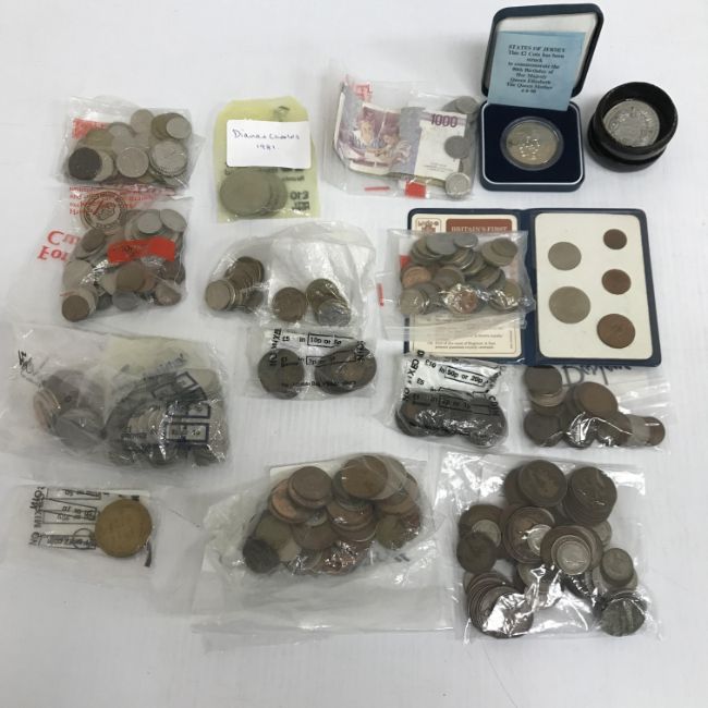 A collection of mainly British coins to include Britain's first decimal coins, Charles and Diana commemorative wedding coins and various other pennies, shillings, farthings etc 48 USA coins to include dollars, half dollars etc together with a World War I British Victory medal inscribed "G-27106 Pte. R. Holloway. Midd'x.r" etc