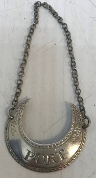 A George III silver wine label inscribed "Port" in the form of a crescent with cut bright floral decoration bears makers name probably James Phipps to back, no date letter 4.5 cm x 4 cm - weighable silver 0.2 oz