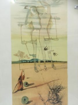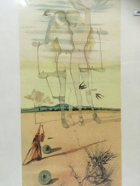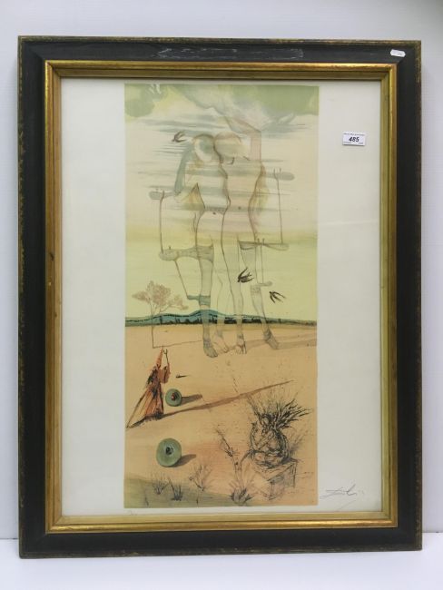 AFTER SALVADOR DALI (Spanish 1904-1989) "A study of two maidens with other figures and roundels in a landscape" colour lithograph, signed in pencil lower right, 74 cm x 55 cm