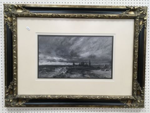 CONTINENTAL SCHOOL (Poss. HANS JOHANN WAGNER?) "Rural landscapes with churches" watercolour, monochrome en grisaille, a pair, both indistinctly signed lower left 27 cm x 48 cm