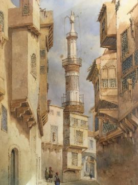 19TH CENTURY ENGLISH SCHOOL "Arab street scene", watercolour and body colour, unsigned, 29 cm x 19 cm