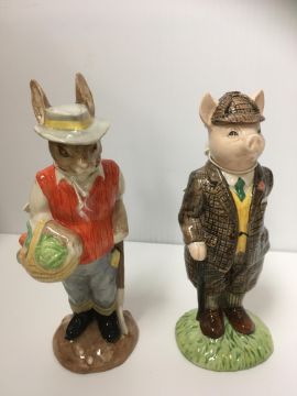 A Beswick Pig Band of nine pieces including "Michael" (PP6), "Andrew" (PP4), "Daniel" (PP5), "David" (PP3), "Christopher" (PP9), "Matthew" (PP2), "Richard" (PP8), "John" (PP1) and "James" (PP7) together with a Beswick figure of a pig in tweed suit "Gentleman Pig" (ECF4) and another figure "Gardener Rabbit" (ECF3)
