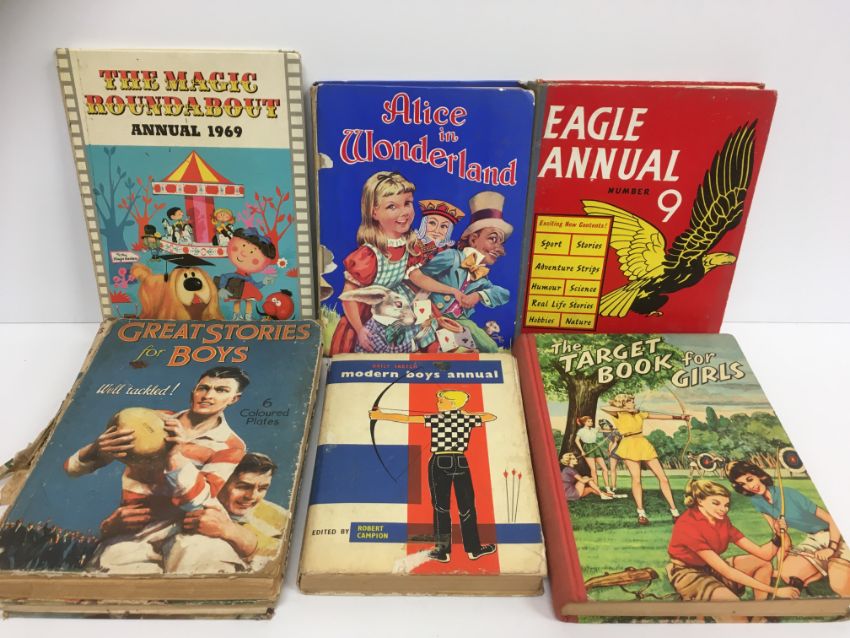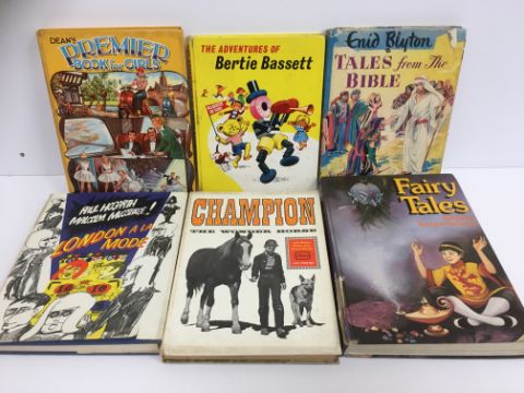 A collection of childrens books and annuals to include The Adventures of Bertie Bassett, The Bobbsey Twins Annual, BBC Childrens Hour Annual 1954, The Beano Book 1973, Daily Sketch Modern Boys Annual, Eagle Annual No. 9 etc