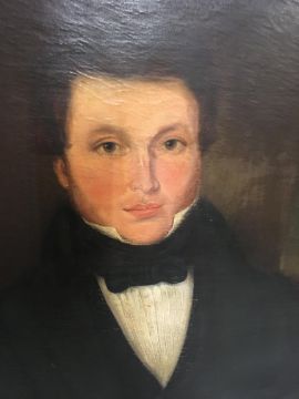EARLY 19TH CENTURY IRISH SCHOOL "Robert Saunderson of Comber, County Down, born 1802, married 9th January 1829, Agnes daugther of Samuel Jeffrey, Esq., of Comber, County Down, died 11 July 1847", together with a portrait of Agnes, a pair head and shoulders portrait studies, oil on canvas, he with typed family history verso, 56 cm x 48 cm