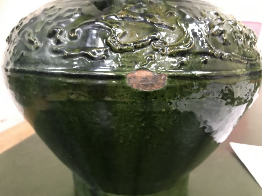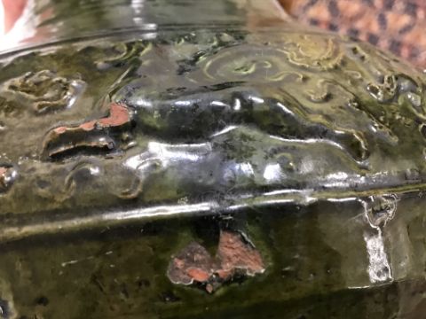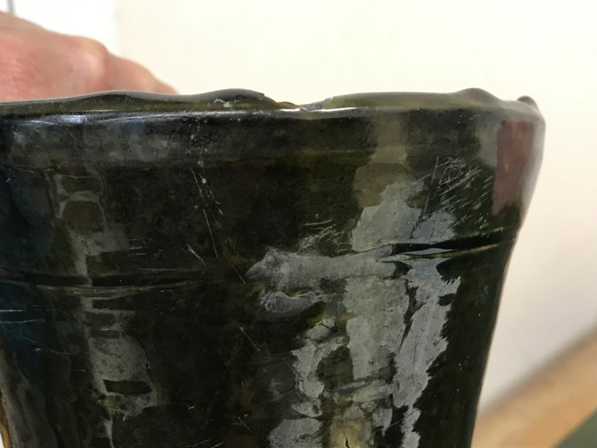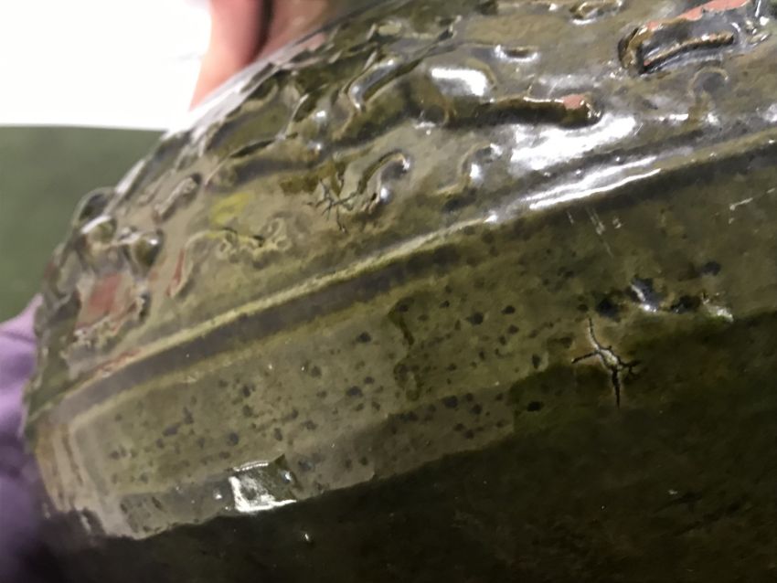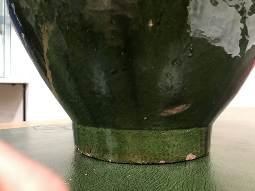 Has large losses throughout especially to the rim and base as well as the glaze. All over crazing, firing faults, scratches etc. General wear and tear conducive with heavy use - see images for more details.