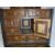 A 17th Century Augsburg table-top or travelling chest, the green stained and embossed leather exterior with plated mounts and swan neck handle, the top rising to reveal a parquetry inlaid compartment over a fall front with marquetry inlaid interior depicting a figure with stringed instrument, camel and horse before a town enclosing a central cupboard door similarly decorated surmounted by two dummy drawers and flanked by two pairs of small drawers over a single long drawer as two. Bears handwritten pen and ink label "17th Century Augsburg box containing drawers inlaid with coloured woods & cupboard on outside in green leather"(Seemingly in the Queen's own hand), a typed label inscribed "With best wishes from The Queen" and later handwritten note inscribed "From Queen Mary to my Great Aunt Lady Northcliffe" 22.5 cm wide x 15.3 cm deep x 19 cm high (Provenance: Lady Northcliffe thence by descent)