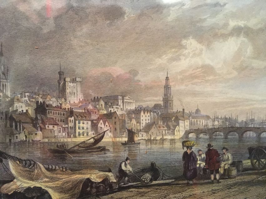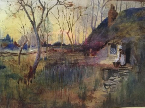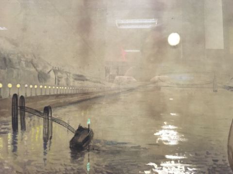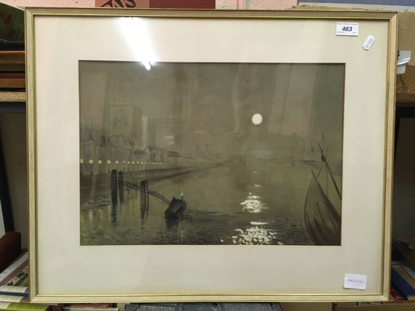 J A TOFT "River scene with bridge in background, lighting along quayside in moonlight" watercolour heightened with white, signed lower right 33 cm x 47 cm together with fourteen various paintings and prints