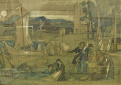 STEWART CARMICHAEL (1867-1950) "First study for Tir-Nan-Og - The Land of the Ever Young", pencil, watercolour and pastel with grid, bears inscription verso "First study for Tir-Nan-Og Stewart Carmichael 65 Nellgate, Dundee", unsigned, 36 cm x 54 cm