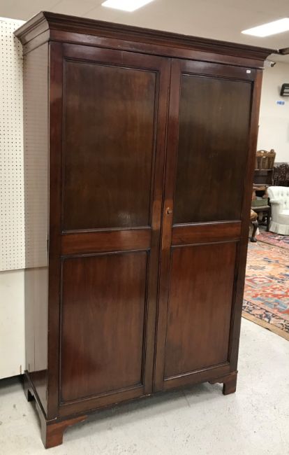 A circa 1900 mahogany two door wardrobe on bracket feet, 119 cm wide x 52 cm deep x 190 cm high