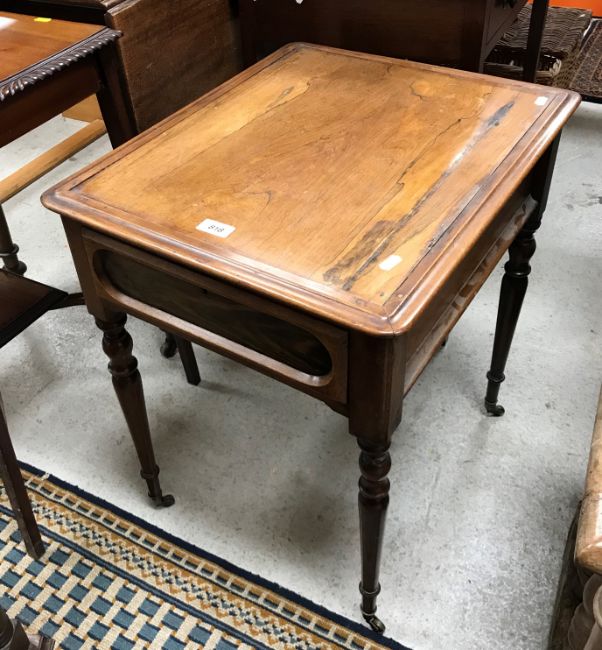 A Victorian rosewood single drawer side table on turned tapering legs to castors, 56 cm wide x 46.5 cm deep x 62 cm high