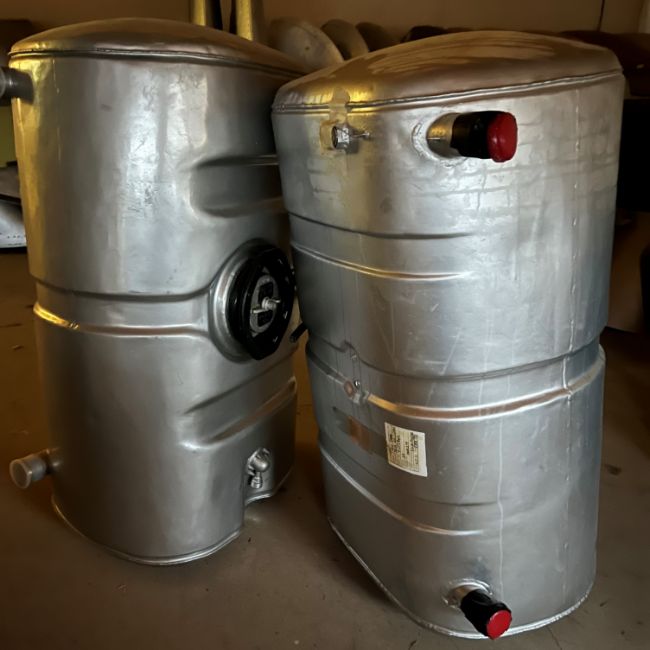 Three various De Havilland fuel tanks, 31.5 gallons, 88 cm wide x 48 cm deep x 42 cm high