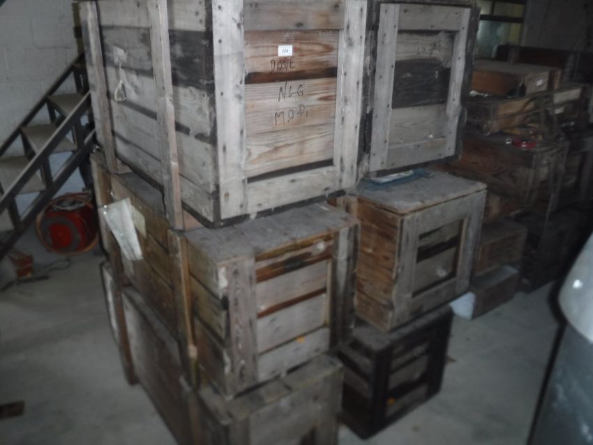 Six aeronautical wooden crates, largest 115 cm x 45 cm x 54 cm high