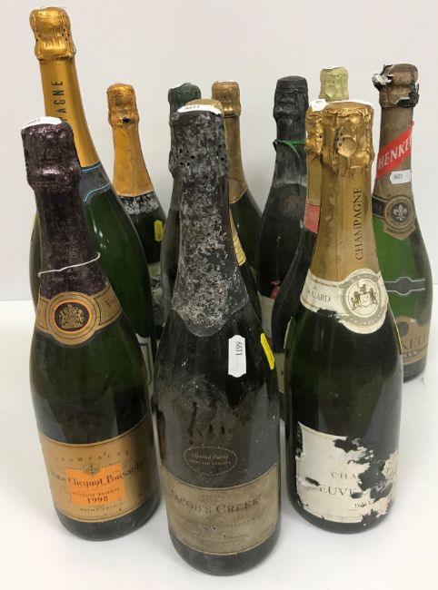 A collection of twelve bottles of Champagne and sparkling wines, including one bottle Veuve Clicquot Ponsardin Vintage Reserve 1998, one bottle R Renaudin Grande Reserve, one bottle Veuve Edouard, one magnum Oudinot à Epernay and eight bottles sparkling wines various