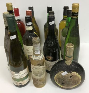 A collection of fifteen various bottles of white and rose wines including one bottle Jean Marc Brocard Chablis 1er Cru, two bottles Chateau Haut Reygnac 2001, seven other various white wines, two bottles Wine Society Fino Sherry, one bottle Mateus Rosé, one bottle unnamed rosé and one half bottle Chateau Carbonnieux 1974