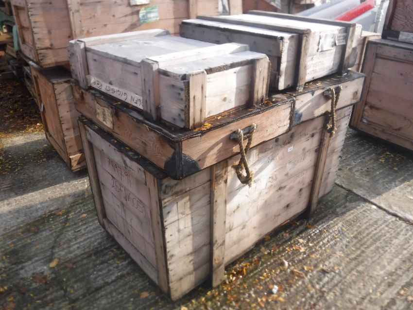 Five aeronautical wooden crates, largest 135 cm x 73 cm x 75 cm high