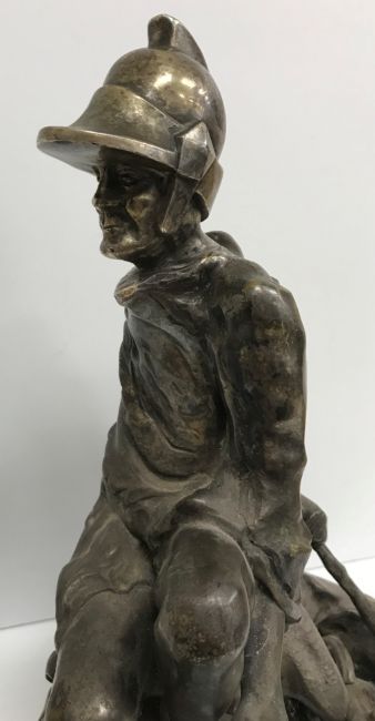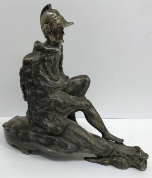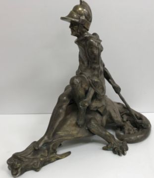 A modern silvered bronze figure of St. George and the dragon, 40 cm high