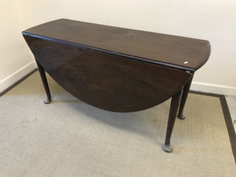 A 19th Century mahogany oval drop-leaf dining table, the top with plain moulded edge, raised on turned tapering legs to pad feet, 147.5 cm long x 142.5 cm wide x 72 cm high