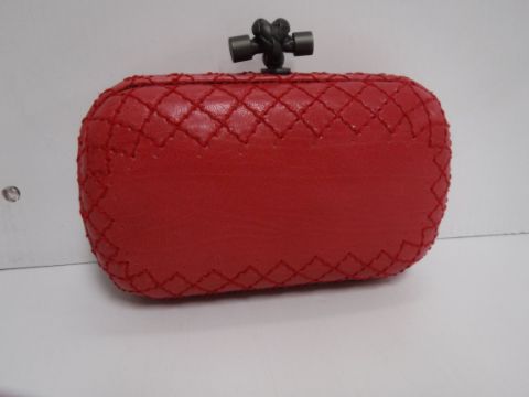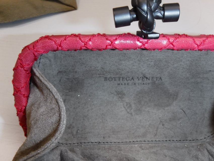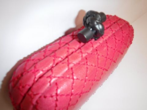 A Bottega Veneta leather knot clutch in raspberry 17 cm long x 13 cm high including handle with dust bag