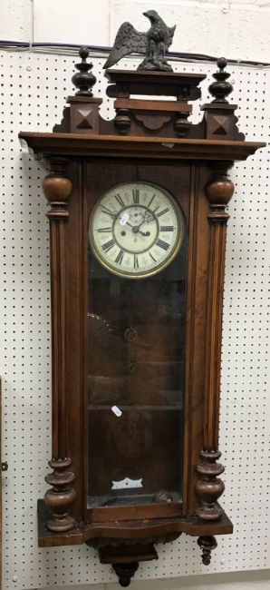 A 19th Century walnut cased Vienna style regulator, the eight day movement by Gustav Becker with circular dial and Roman numerals approx. 125 cm high x 42 cm wide